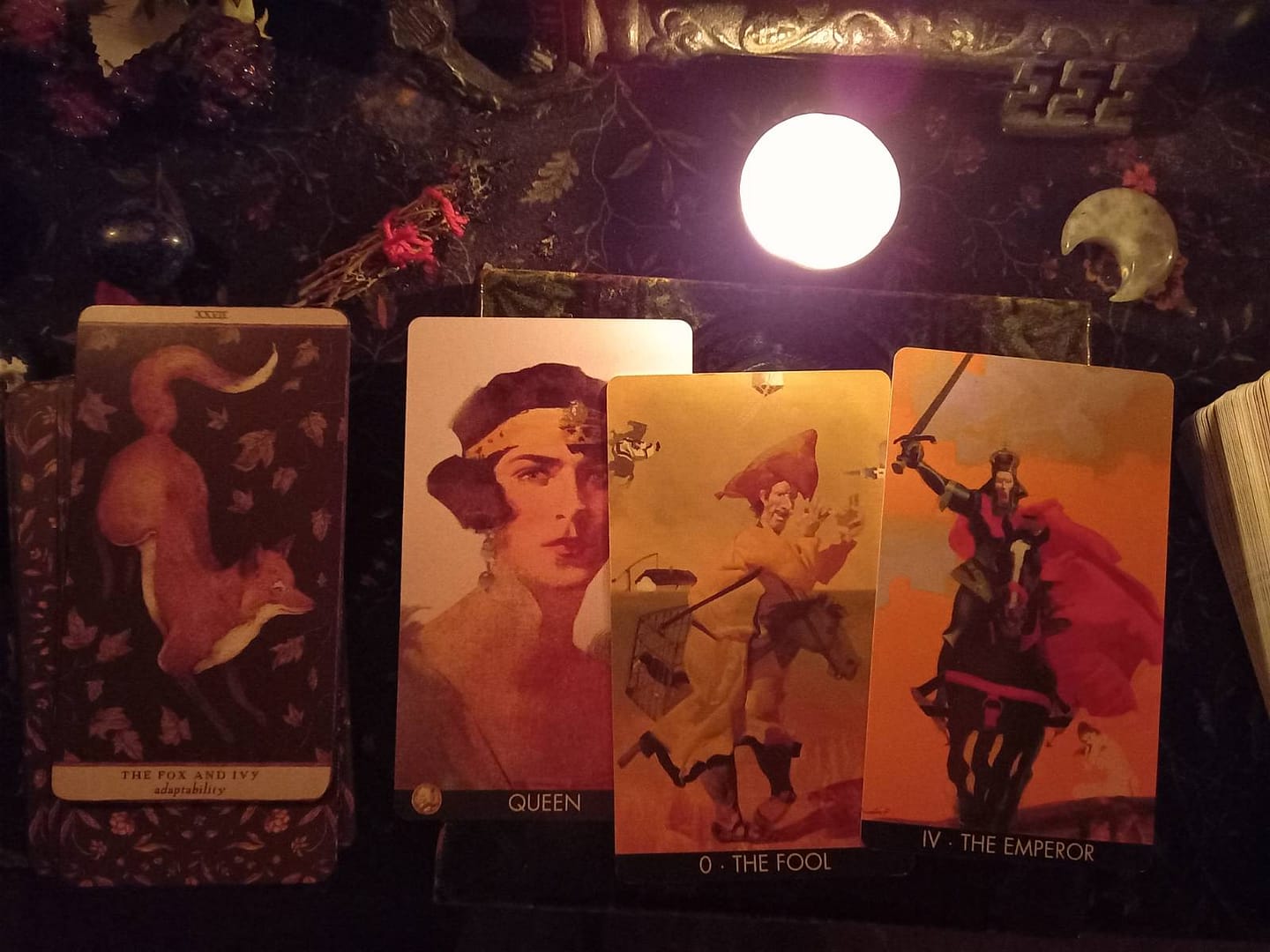 Header image is of last night’s tarot reading, on the subject of openness, sensory fun, and pragmatic confidence.