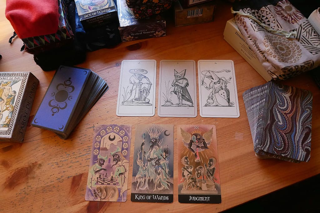 Trionfi della Luna Tarot – Pagan Otherworlds Tarot – Medieval Scapini Tarot (modded) – Crystal Tarot (modded) – Hush Tarot Magicae Daemonibus Tarot – Tarot of Mystical Moments – Lonely Dreamer Tarot – Carnival at the End of the World Tarot … deck mentioned but not shown: The Dreaming Way Tarot