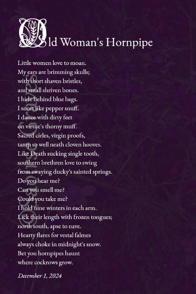 Aren’t these divisions all rather broadly brushed in the end? Who does ‘maiden, mother, crone’ apply to anyway… I’m not aware of there being a straightforward “maiden” component to the Morrígan, for example, and I think her “motherhood”-relevant narratives are deeply complicated. Ultimately – at least from my lived perspective and my own religious Unverified Personal Gnosis – that’s not really a paradigm that illuminates much. Aging is interesting but dividing it according to sexual reproductive function as a marker of social development and value? …Perhaps only with biting sarcasm. At best it’s one variable with rather limited pre-conditions.